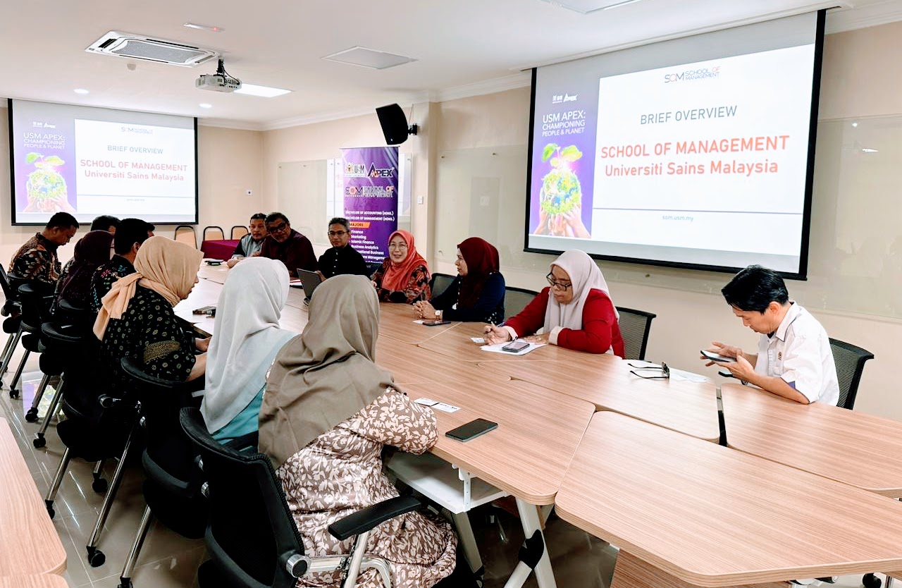 Dari pihak SoM USM, hadir Prof. Dr. Noor Hazlina Ahmad selaku Dekan, bersama jajaran pimpinan fakultas termasuk Assoc. Professor Dr. Siti Rohaida Mohamed Zainal (Timbalan Dekan Akademik, Kerjaya dan Antarabangsa) dan Professor Dr. Hasliza Abdul Halim (Timbalan Dekan Penyelidikan, Inovasi dan Libatsama Industri-Komuniti). Turut hadir pula para ketua program studi dari berbagai bidang di SoM USM.