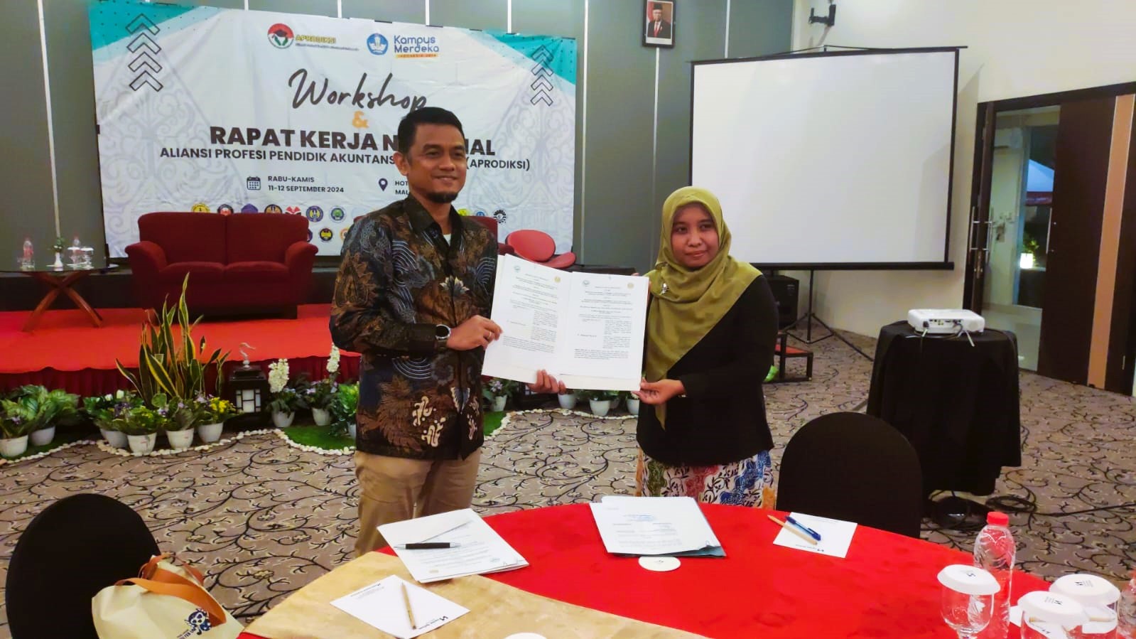 Program Studi Pendidikan Akuntansi Fakultas Ekonomi Universitas Negeri Medan (FE UNIMED) turut berpartisipasi dalam Kegiatan Workshop dan Rapat Kerja Nasional APRODIKSI 2024 yang diselenggarakan pada tanggal 11-12 September 2024 di Hotel Swiss Belinn Malang, Jawa Timur. Acara ini dihadiri oleh Sekretaris Jurusan Akuntansi, Ramdhansyah, S.E., M.Acc., dan Ketua Prodi Pendidikan Akuntansi, Andri Zainal, S.E., M.Si., Ak., Ph.D.